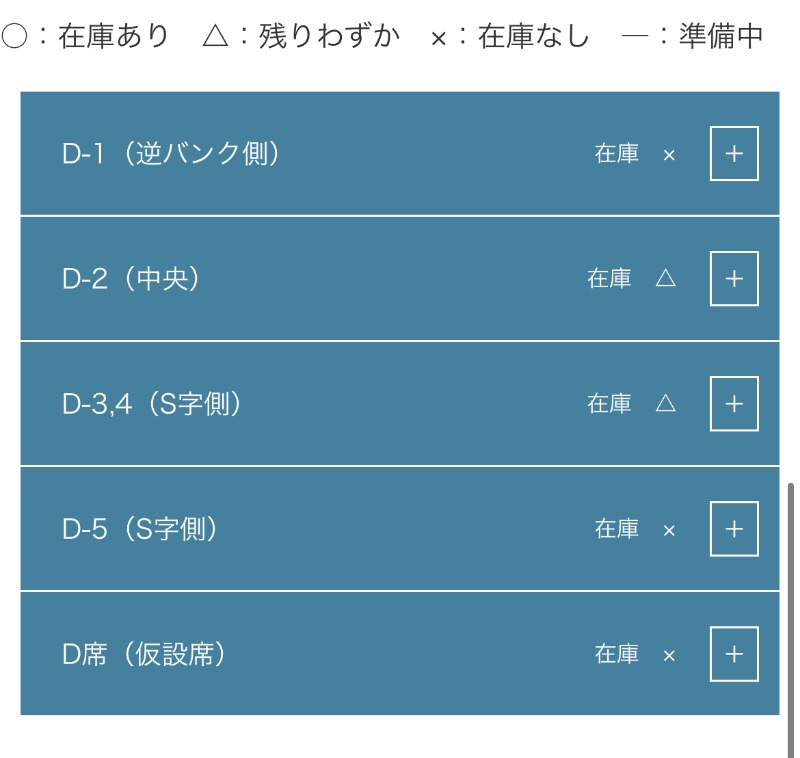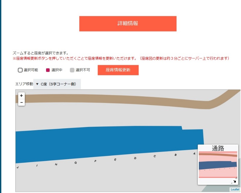 諦めずに購入画面に無事アクセスし、座席表から席を探していたのですが、