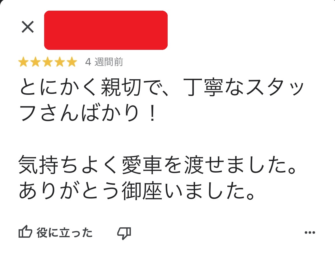 お車のご相談・ 査定だけでもOK! カンタン 入力 30秒 アップルがブランド買取始めました! お電話でも受付中! 受付時間10:00~19:00 ※毎週水曜定休日 052-508-9641 お車のご相談・ 査定だけでもOK! カンタン 入力 30秒 アップルがブランド買取始めました! お電話でも受付中! 受付時間10:00~19:00 ※毎週水曜定休日 052-508-9641 アップルがブランド買取始めました! お電話でも受付中! 受付時間10:00~19:00 ※毎週水曜定休日 052-508-9641 店舗情報 在庫車 スタッフ紹介 ブログ お客様の声 キャンペーン お得 無料査定 click お客様の声 ご記入日: 2023/05/28 匿名希望ハイエースV様 車名:トヨタ ハイエースバン とにかく親切で、丁寧なスタッフさんばかり!気持ち良く愛車を渡せました。ありがとう御座いました。 前へ 次へ お客様の声一覧を見る