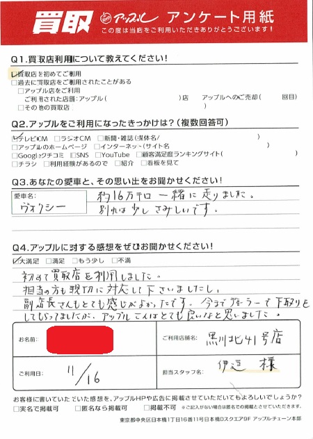今までディーラーで下取りをしてもらってましたが、アップルさんはとても良いなと思いました。