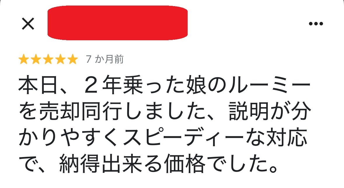 お車のご相談・ 査定だけでもOK! カンタン 入力 30秒 アップルがブランド買取始めました! お電話でも受付中! 受付時間10:00~19:00 ※毎週水曜定休日 052-508-9641 お車のご相談・ 査定だけでもOK! カンタン 入力 30秒 アップルがブランド買取始めました! お電話でも受付中! 受付時間10:00~19:00 ※毎週水曜定休日 052-508-9641 アップルがブランド買取始めました! お電話でも受付中! 受付時間10:00~19:00 ※毎週水曜定休日 052-508-9641 店舗情報 在庫車 スタッフ紹介 ブログ お客様の声 キャンペーン お得 無料査定 click お客様の声 ご記入日: 2025/03/23 匿名希望ルーミー様 車名:トヨタ ルーミー 本日、2年乗った娘のルーミーを売却同行しました。説明が分かりやすくスピーディーな対応で、納得できる価格でした。 前へ 次へ お客様の声一覧を見る