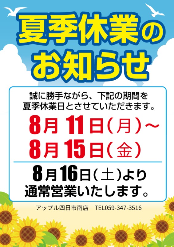 四日市南店のキャンペーン情報です。