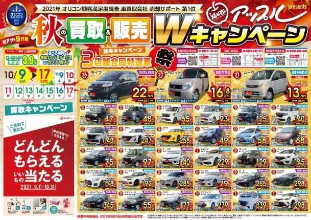 お車のご相談・ 査定だけでもOK! カンタン 入力 30秒 アップルがブランド買取始めました! お電話でも受付中! 受付時間10:00 ~ 18:30 0120-665-977 お車のご相談・ 査定だけでもOK! カンタン 入力 30秒 アップルがブランド買取始めました! お電話でも受付中! 受付時間10:00 ~ 18:30 0120-665-977 アップルがブランド買取始めました! お電話でも受付中! 受付時間10:00 ~ 18:30 0120-665-977 店舗情報 在庫車 スタッフ紹介 ブログ お客様の声 キャンペーン お得 無料査定 click [ つぶやき ] 2021/10/04 (月) 16:52 2021秋販売イベントのお知らせ♪ こんにちは、出口です♪いきなりですが三重県3店舗合同10月9日(土)~17日(日)まで販売イベント開催します!(アップル四日市南店、四日市ときわ店、鈴鹿中央通り店)期間中は在庫車がお値打ち価格で販売!さらに、オートローン特別金利3.9%!さらにさらに、嬉しい選べる特典希望ナンバーサービスor納車時ガソリン満タンサービス!車を買うなら今がチャンス!ぜひたくさんのご来店お待ちしております♪ 2021-10-04 16:52:00 新しい記事へ 古い記事へ 最新記事 4月は自動車税全額負担させていただきます前向き・リフレッシュ年末の話激辛部活動H26レクサスRC300H Fスポーツ入庫 店舗情報に戻る 月別アーカイブ 2026年04月(2)2026年01月(1)2025年10月(4)2025年09月(1)2025年08月(2)2025年07月(2)2025年06月(2)2025年05月(1)2025年04月(1)2024年10月(3)2024年02月(1)2023年12月(1)2023年09月(2)2023年06月(2)2023年04月(1)2022年07月(1)2022年04月(1)2022年02月(1)2022年01月(3)2021年10月(4)2021年09月(2)2021年08月(5)2021年07月(4)2021年06月(4)2021年05月(4)2021年04月(3)2021年03月(5)2021年02月(5)2021年01月(4)2020年12月(4)2020年11月(2)2020年10月(5)2020年09月(3)2020年08月(5)2020年07月(2)2020年06月(3)2020年05月(6)2020年04月(4)2020年03月(3)2020年02月(5)2020年01月(4)2019年12月(3)2019年11月(6)2019年10月(6)2019年09月(2)2019年08月(5)2019年07月(3)2019年06月(3)2019年05月(3)2019年04月(3)2019年03月(3)2019年02月(2)2019年01月(2)2018年12月(2)2018年11月(1)2018年10月(2)2018年09月(4)2018年08月(2)2018年07月(4)2018年06月(1)2018年05月(1)2018年04月(3)2018年03月(1)2018年02月(1)2018年01月(3)2017年12月(3)2017年11月(4)2017年10月(4)2017年09月(5)2017年08月(2)2017年06月(1)2017年05月(1)2017年03月(1)2017年01月(2)2016年12月(1)2016年11月(2)2016年10月(3)