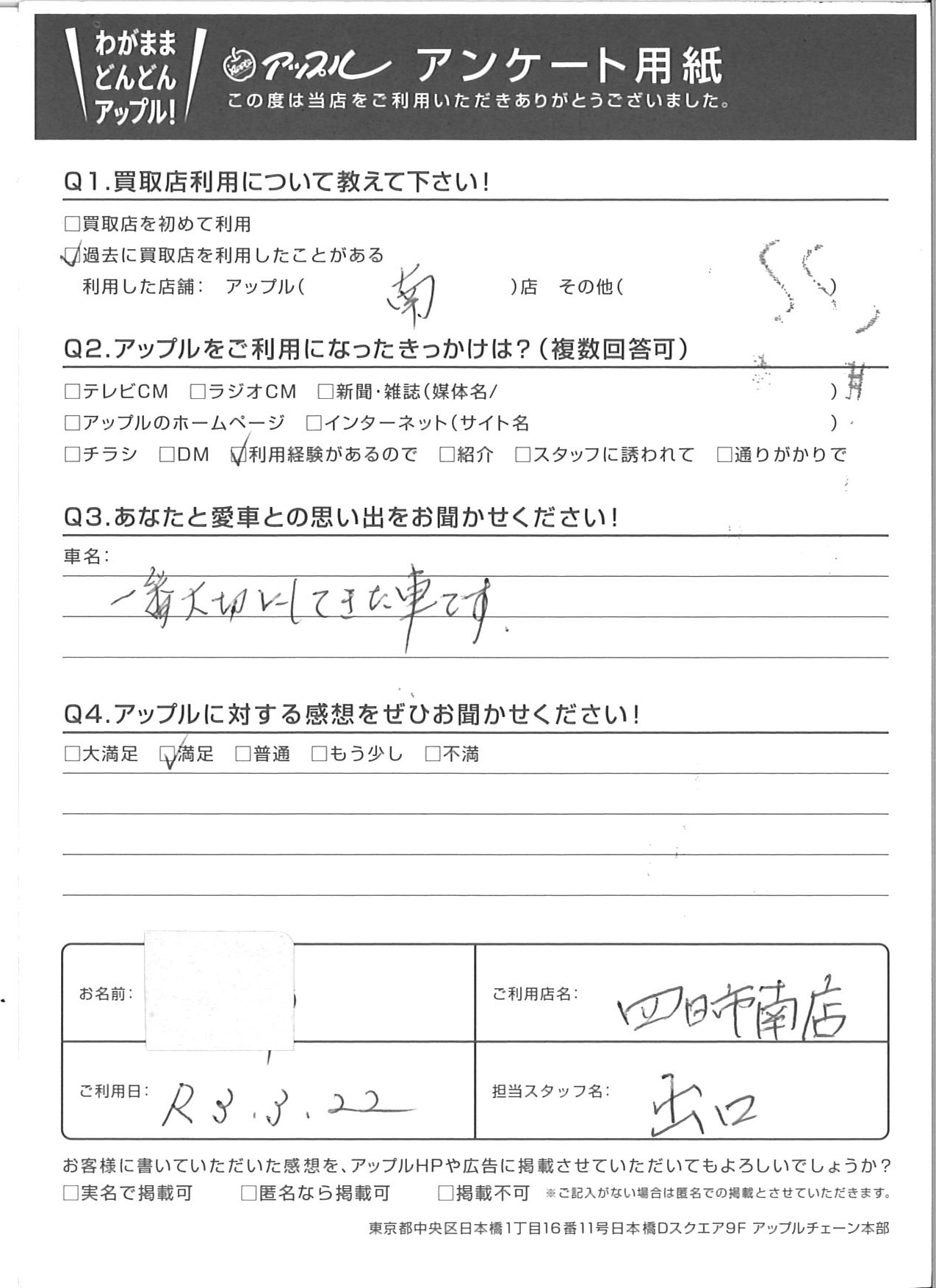 ご記入日: 2021/03/22