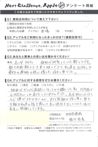 ホンダアクティ 祖母が所有していた軽トラです。数十年間軽トラを乗り継いできて、私達も引越しや資材の運搬の時に借りた役立つ車でした。