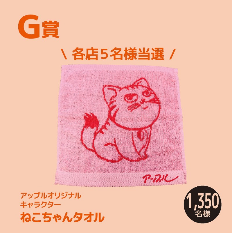 ◆G賞【ねこちゃんタオル】 各店5名様 計1,350名様