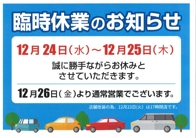 お車のご相談・ 査定だけでもOK! カンタン 入力 30秒 アップルがブランド買取始めました! お電話でも受付中! 受付時間 10:00 ~ 18:30 0120-866-446 お車のご相談・ 査定だけでもOK! カンタン 入力 30秒 アップルがブランド買取始めました! お電話でも受付中! 受付時間 10:00 ~ 18:30 0120-866-446 アップルがブランド買取始めました! お電話でも受付中! 受付時間 10:00 ~ 18:30 0120-866-446 店舗情報 在庫車 スタッフ紹介 ブログ お客様の声 キャンペーン お得 無料査定 click [ つぶやき ] 2025/12/21 (日) 14:09 臨時休業のお知らせ(12/24〜12/25) いつもアップル鈴鹿中央通り店をご利用いただき、誠にありがとうございます。誠に勝手ながら、下記の期間を臨時休業とさせていただきます。【臨時休業期間】12月24日(水)~12月25日(木)なお、12月26日(金)より通常営業いたします。また、店舗改装のため12月23日(火)は17時閉店とさせていただきます。お客様にはご不便をおかけいたしますが、何卒ご理解のほどよろしくお願いいたします。今後ともアップル鈴鹿中央通り店をよろしくお願いいたします。 2025-12-21 14:09:30 新しい記事へ 古い記事へ 最新記事 連休だから、できたこと。「これ売れるかな?」と思ったら、アップルへ!\ ついにリニューアル!大還元祭&大買取祭 開催! /鈴鹿中央通り店、リユース始まってます!期間限定キャンペーン実施中です!!! 店舗情報に戻る 月別アーカイブ 2026年04月(1)2026年02月(3)2026年01月(1)2025年12月(3)2025年11月(2)2025年10月(6)2025年09月(7)2025年08月(14)2025年07月(11)2025年06月(6)2025年05月(1)2025年04月(3)2025年03月(3)2025年02月(2)2024年12月(1)2024年11月(1)2024年10月(5)2024年09月(5)2024年08月(4)2024年07月(3)2024年06月(6)2024年03月(1)2024年02月(3)2024年01月(5)2023年12月(4)2023年11月(4)2023年10月(4)2023年09月(5)2023年08月(4)2023年07月(4)2023年06月(6)2023年05月(1)2023年04月(3)2023年03月(2)2023年01月(2)2022年12月(1)2022年08月(2)2022年06月(1)2022年01月(4)2021年10月(2)2021年09月(2)2021年08月(3)2021年07月(3)2021年06月(1)2021年05月(1)2021年04月(2)2021年03月(4)2021年02月(3)2021年01月(5)2020年12月(4)2020年11月(4)2020年10月(5)2020年09月(2)2020年08月(1)2020年07月(1)2020年06月(1)2020年04月(4)2020年03月(2)2020年02月(1)2019年12月(1)2019年11月(1)2019年10月(2)2019年09月(1)2019年07月(5)2019年06月(4)2019年05月(3)2019年04月(2)2019年01月(4)2018年12月(2)2018年11月(3)2018年10月(3)2018年09月(8)2018年08月(4)2018年07月(3)2018年02月(2)2018年01月(2)2017年12月(4)2017年11月(2)2017年10月(5)2017年09月(4)2017年08月(2)2017年07月(1)2017年04月(1)2017年03月(1)2017年01月(1)2016年12月(2)2016年10月(2)2016年09月(3)2016年08月(1)2016年07月(1)2016年06月(2)2016年05月(1)2016年04月(3)2016年03月(2)2016年02月(2)2016年01月(3)2015年12月(1)2015年11月(2)2015年09月(1)2014年10月(3)2014年09月(1)2014年07月(1)2014年05月(1)2014年01月(2)2013年09月(1)2013年08月(1)2012年08月(1)
