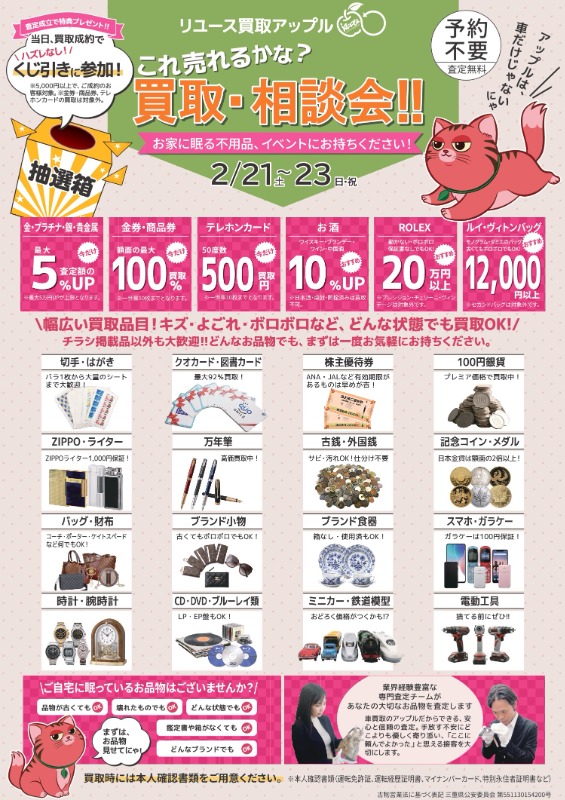 2/21(土)〜23(日・祝)の3日間、**【買取・相談会】**を開催いたします✨