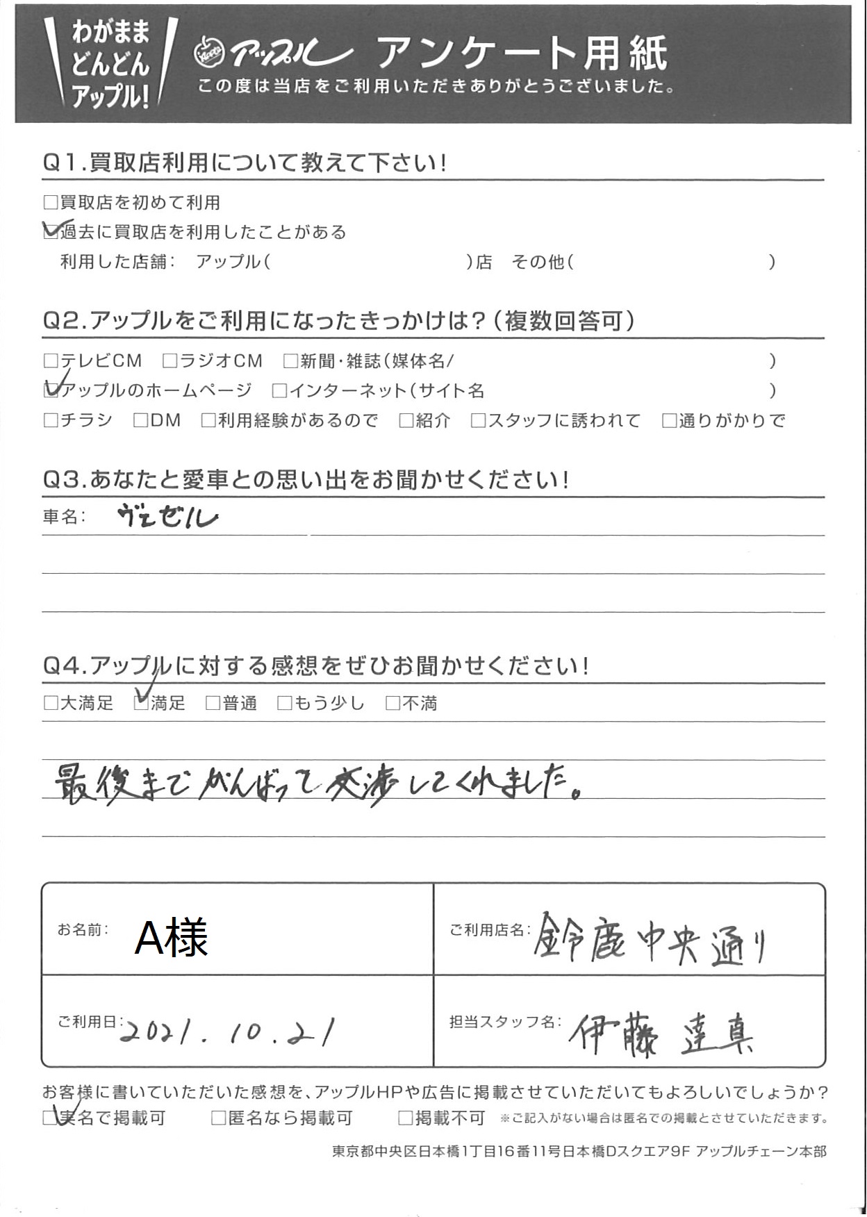 お車のご相談・ 査定だけでもOK! カンタン 入力 30秒 アップルがブランド買取始めました! お電話でも受付中! 受付時間 10:00 ~ 18:30 0120-866-446 お車のご相談・ 査定だけでもOK! カンタン 入力 30秒 アップルがブランド買取始めました! お電話でも受付中! 受付時間 10:00 ~ 18:30 0120-866-446 アップルがブランド買取始めました! お電話でも受付中! 受付時間 10:00 ~ 18:30 0120-866-446 店舗情報 在庫車 スタッフ紹介 ブログ お客様の声 キャンペーン お得 無料査定 click お客様の声 ご記入日: 2021/10/21 A様 車名:ホンダ ヴェゼル ◎あなたと愛車との思い出をお聞かせください!車名:ヴェゼル◎アップルに対する感想をぜひお聞かせください!最後までがんばって交渉してくれました。 前へ 次へ お客様の声一覧を見る