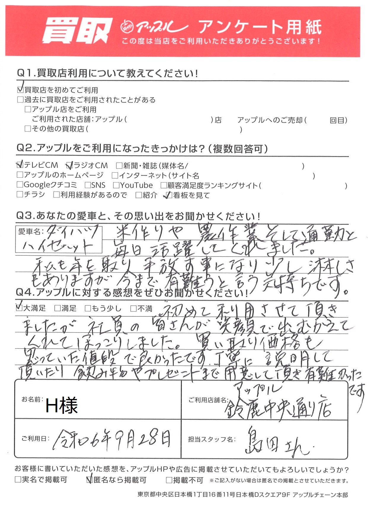 H様 車名:ダイハツ