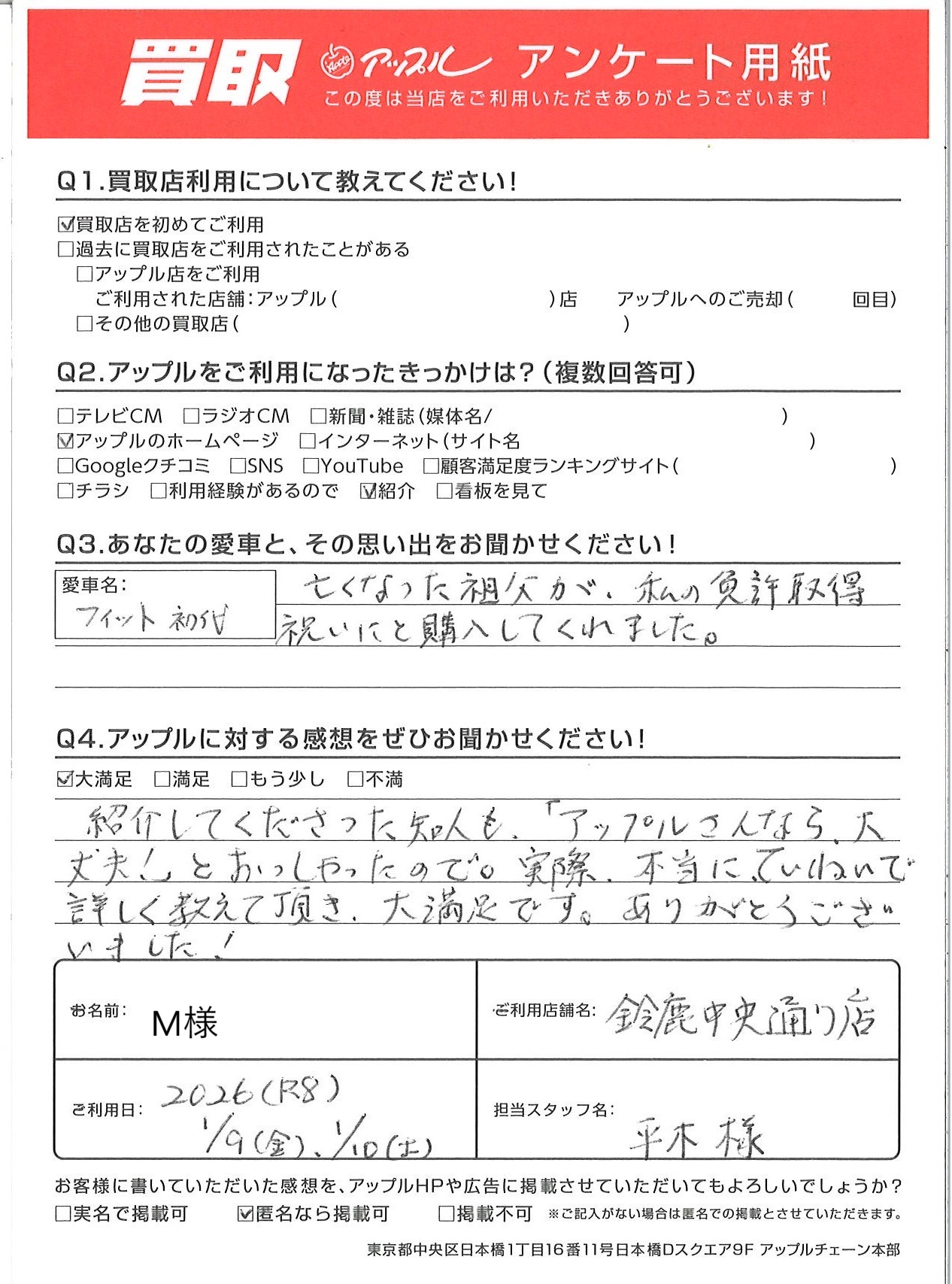紹介してくださった知人も「アップルさんなら大丈夫!」