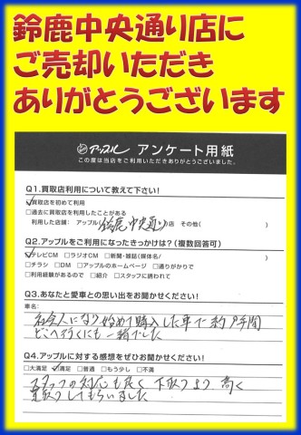 お車のご相談・ 査定だけでもOK! カンタン 入力 30秒 アップルがブランド買取始めました! お電話でも受付中! 受付時間 10:00 ~ 18:30 0120-866-446 お車のご相談・ 査定だけでもOK! カンタン 入力 30秒 アップルがブランド買取始めました! お電話でも受付中! 受付時間 10:00 ~ 18:30 0120-866-446 アップルがブランド買取始めました! お電話でも受付中! 受付時間 10:00 ~ 18:30 0120-866-446 店舗情報 在庫車 スタッフ紹介 ブログ お客様の声 キャンペーン お得 無料査定 click お客様の声 ご記入日: 2016/07/31 T.A様 当店をご利用頂きまして、誠にありがとうございます。またのご来店をスタッフ一同、心よりお待ちしております。 前へ 次へ お客様の声一覧を見る