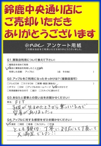 お車のご相談・ 査定だけでもOK! カンタン 入力 30秒 アップルがブランド買取始めました! お電話でも受付中! 受付時間 10:00 ~ 18:30 0120-866-446 お車のご相談・ 査定だけでもOK! カンタン 入力 30秒 アップルがブランド買取始めました! お電話でも受付中! 受付時間 10:00 ~ 18:30 0120-866-446 アップルがブランド買取始めました! お電話でも受付中! 受付時間 10:00 ~ 18:30 0120-866-446 店舗情報 在庫車 スタッフ紹介 ブログ お客様の声 キャンペーン お得 無料査定 click お客様の声 ご記入日: 2016/08/21 R.N様 当店をご利用頂きまして、誠にありがとうございます。またのご来店をスタッフ一同、心よりお待ちしております。 前へ 次へ お客様の声一覧を見る