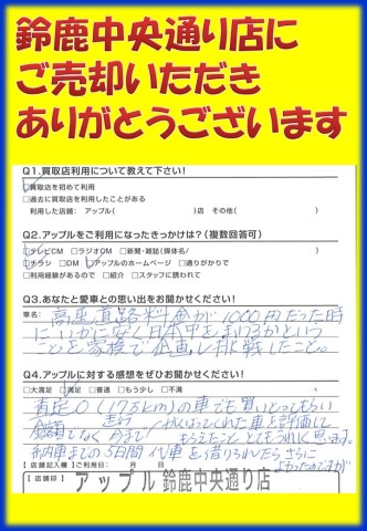 お車のご相談・ 査定だけでもOK! カンタン 入力 30秒 アップルがブランド買取始めました! お電話でも受付中! 受付時間 10:00 ~ 18:30 0120-866-446 お車のご相談・ 査定だけでもOK! カンタン 入力 30秒 アップルがブランド買取始めました! お電話でも受付中! 受付時間 10:00 ~ 18:30 0120-866-446 アップルがブランド買取始めました! お電話でも受付中! 受付時間 10:00 ~ 18:30 0120-866-446 店舗情報 在庫車 スタッフ紹介 ブログ お客様の声 キャンペーン お得 無料査定 click お客様の声 ご記入日: 2016/11/19 A.K様 当店をご利用頂きまして、誠にありがとうございます。またのご来店をスタッフ一同、心よりお待ちしております。 前へ 次へ お客様の声一覧を見る