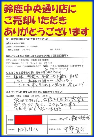 お車のご相談・ 査定だけでもOK! カンタン 入力 30秒 アップルがブランド買取始めました! お電話でも受付中! 受付時間 10:00 ~ 18:30 0120-866-446 お車のご相談・ 査定だけでもOK! カンタン 入力 30秒 アップルがブランド買取始めました! お電話でも受付中! 受付時間 10:00 ~ 18:30 0120-866-446 アップルがブランド買取始めました! お電話でも受付中! 受付時間 10:00 ~ 18:30 0120-866-446 店舗情報 在庫車 スタッフ紹介 ブログ お客様の声 キャンペーン お得 無料査定 click お客様の声 ご記入日: 2018/01/07 H様 当店をご利用頂きまして、誠にありがとうございます。またのご来店をスタッフ一同、心よりお待ちしております。 前へ 次へ お客様の声一覧を見る