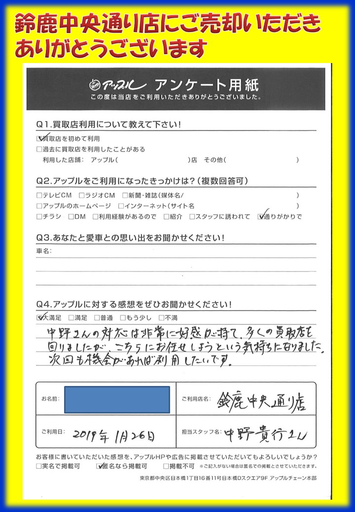 お車のご相談・ 査定だけでもOK! カンタン 入力 30秒 アップルがブランド買取始めました! お電話でも受付中! 受付時間 10:00 ~ 18:30 0120-866-446 お車のご相談・ 査定だけでもOK! カンタン 入力 30秒 アップルがブランド買取始めました! お電話でも受付中! 受付時間 10:00 ~ 18:30 0120-866-446 アップルがブランド買取始めました! お電話でも受付中! 受付時間 10:00 ~ 18:30 0120-866-446 店舗情報 在庫車 スタッフ紹介 ブログ お客様の声 キャンペーン お得 無料査定 click お客様の声 ご記入日: 2019/01/26 三重県 H様 車名:トヨタ クラウン(~H11年8月/H30年6月~) 当店をご利用頂きまして、誠にありがとうございます。またのご来店をスタッフ一同、心よりお待ちしております。 前へ 次へ お客様の声一覧を見る