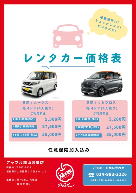 お急ぎの方は、「アップル郡山図景店 TEL:024-983-3226」までお電話ください!!!