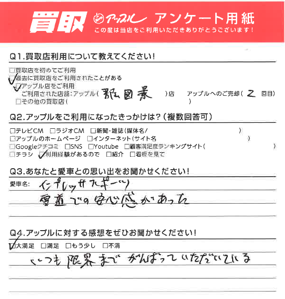 M.K様 車名:スバル インプレッサスポーツ