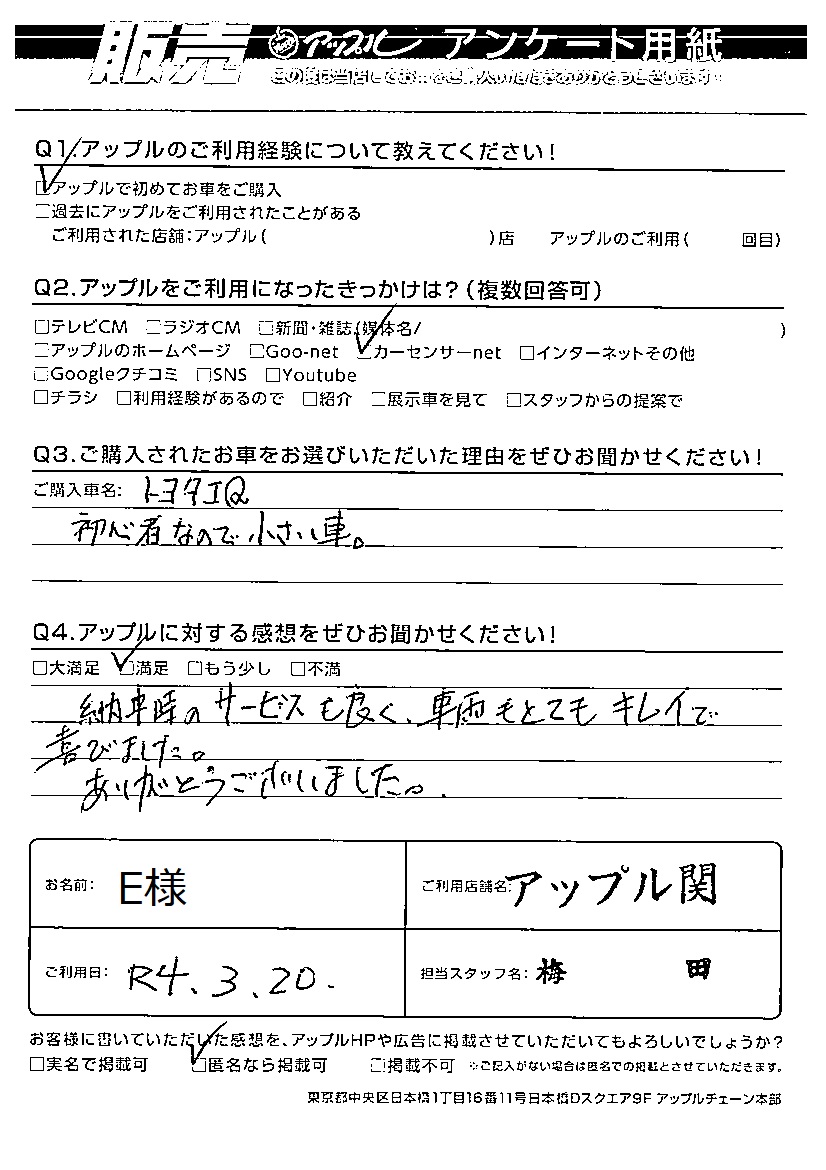 Q ご購入されたお車をお選びいただいた理由をぜひお聞かせください!