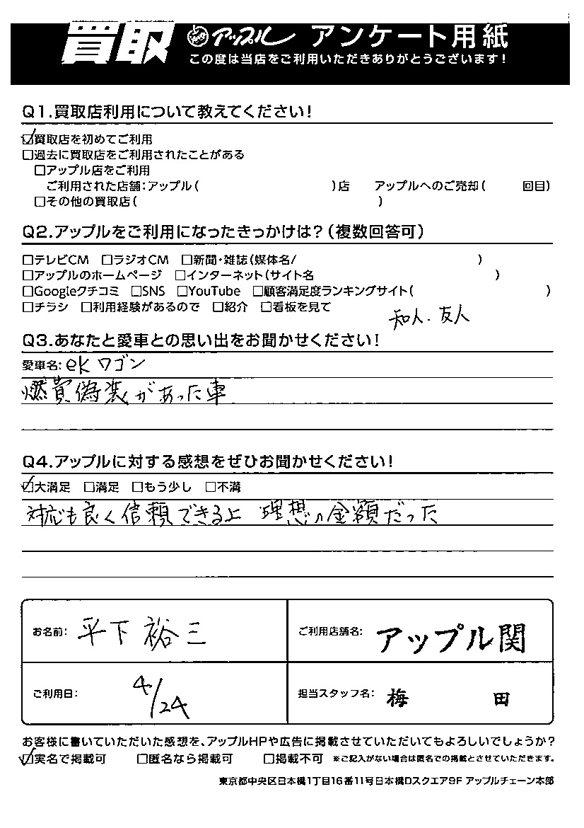 平下 裕三様 車名:三菱 eKワゴン