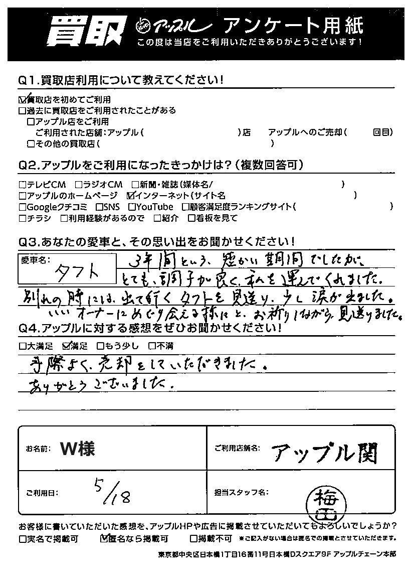 W様 車名:ダイハツ タフト