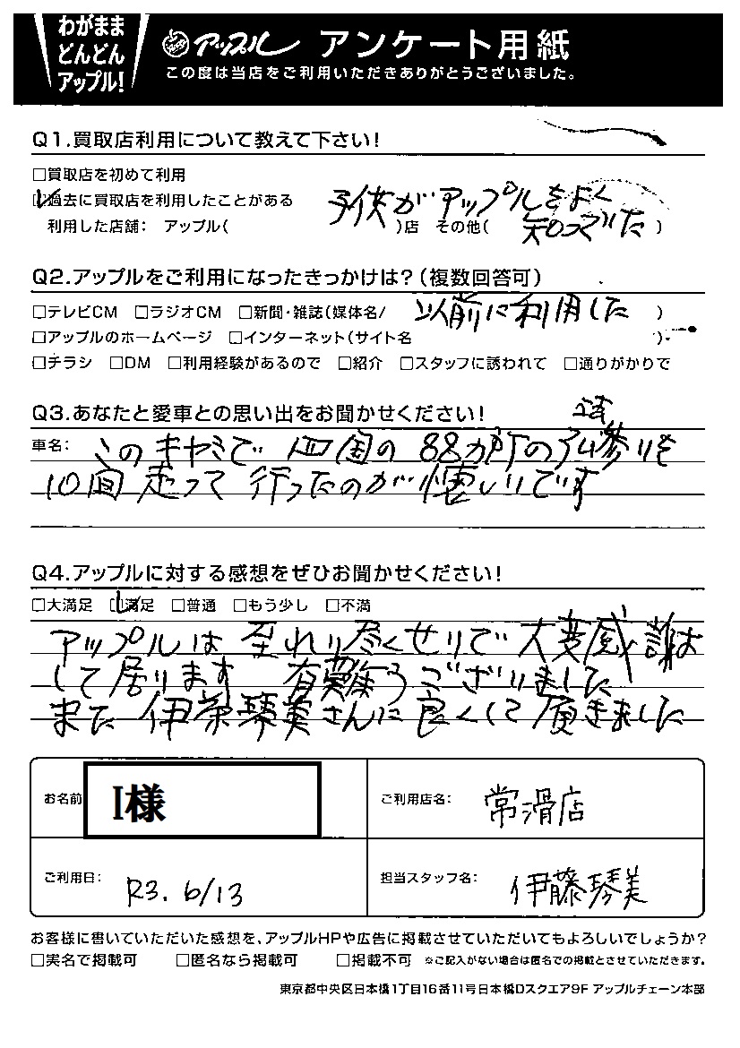 匿名希望 I様 車名:トヨタ キャミ