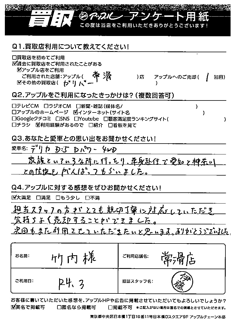 竹内様 車名:三菱 デリカD:5