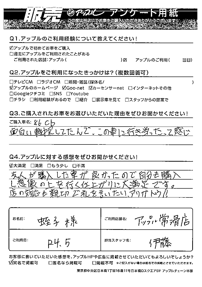 Q ご購入されたお車をお選びいただいた理由をぜひお聞かせください!