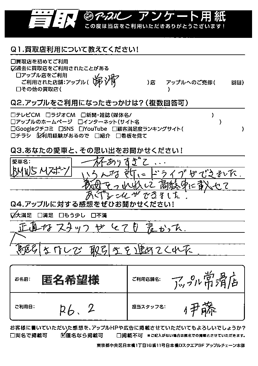 匿名希望 様 担当:伊藤