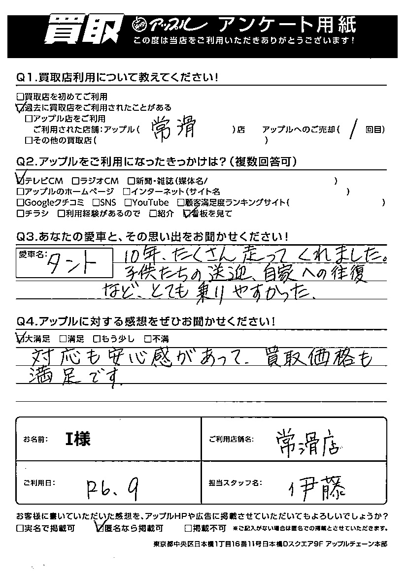 I様 車名:ダイハツ タント