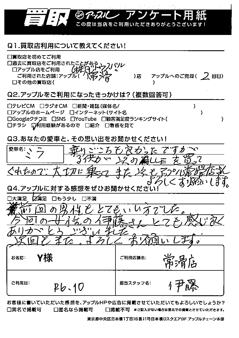 今回の女性の伊藤さんとても感じ良くありがとうございました。