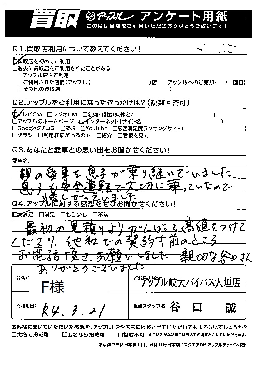 息子も安全運転で大切に乗っていたので惜しがっていました。