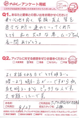この度は当アップル岐大バイパス大垣店でおクルマをご売却頂きましてありがとうございます。