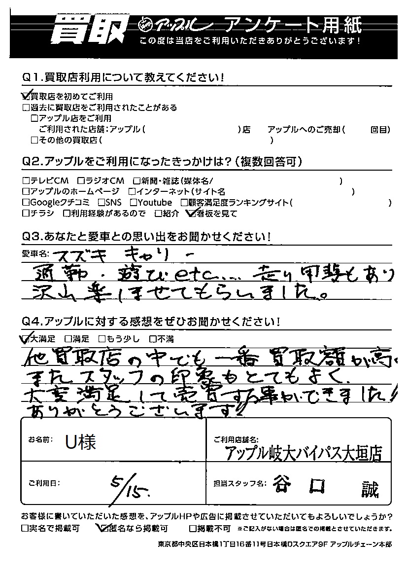 他買取店の中でも一番買取額が高く、またスタッフの印象もとてもよく大変満足して売買することができました!!