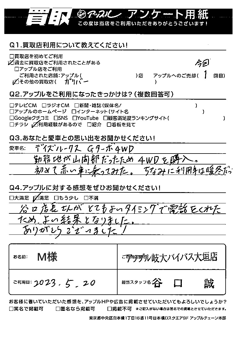 ご利用日:5/20 M 様