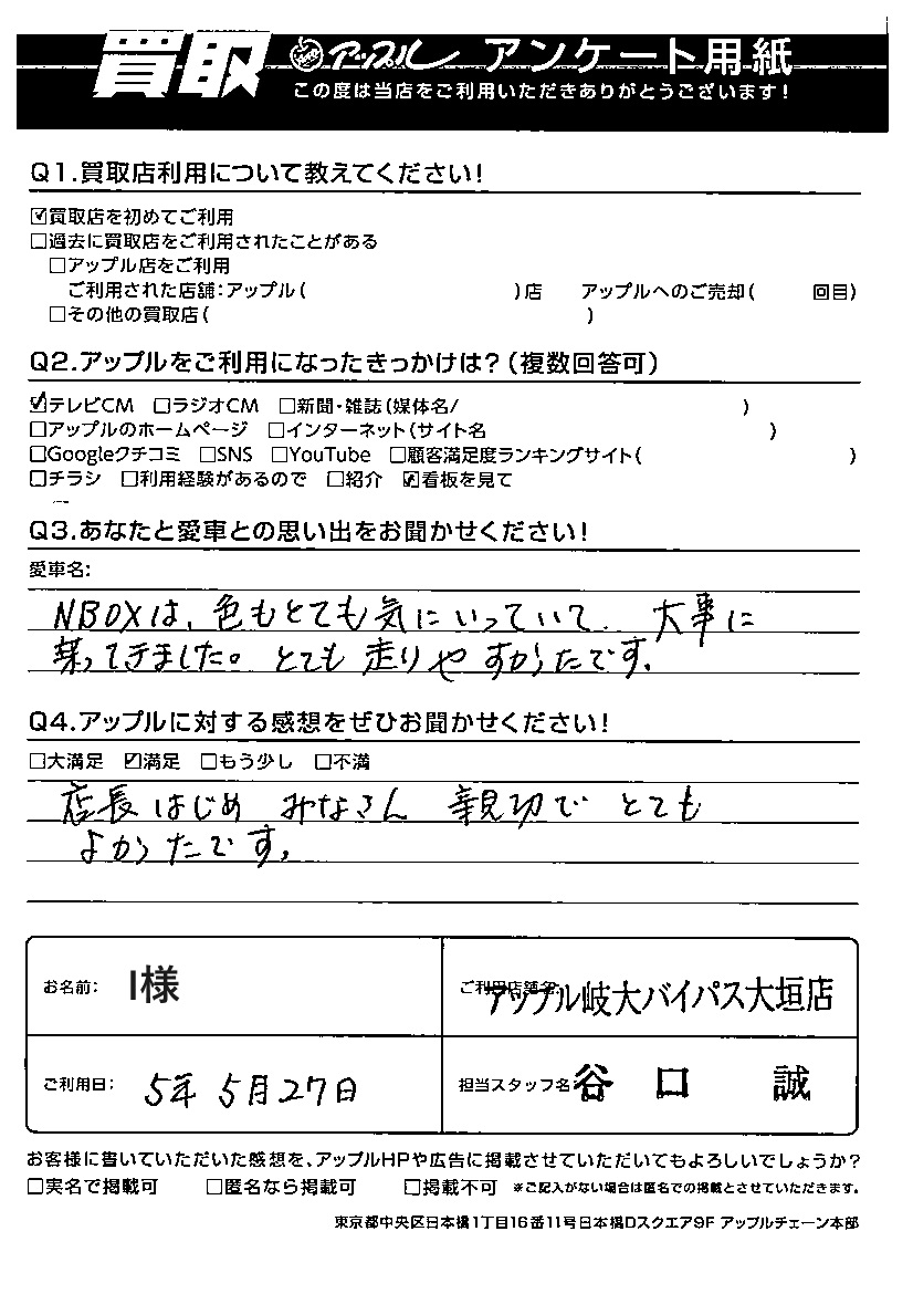 ご利用日:5/27 I 様