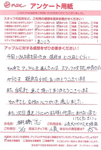 その中でもアップルを選んだのはスタッフの対応が良かったからです。