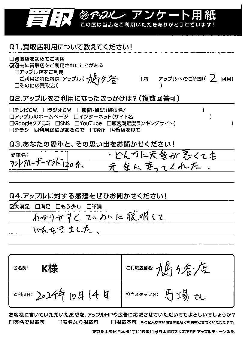 A:どんなに天気が悪くても、元気に走ってくれた。