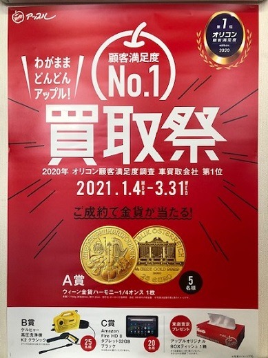 只今、車買取のアップルでは、「わがままどんどんアップル!買取祭」を実施致しております!