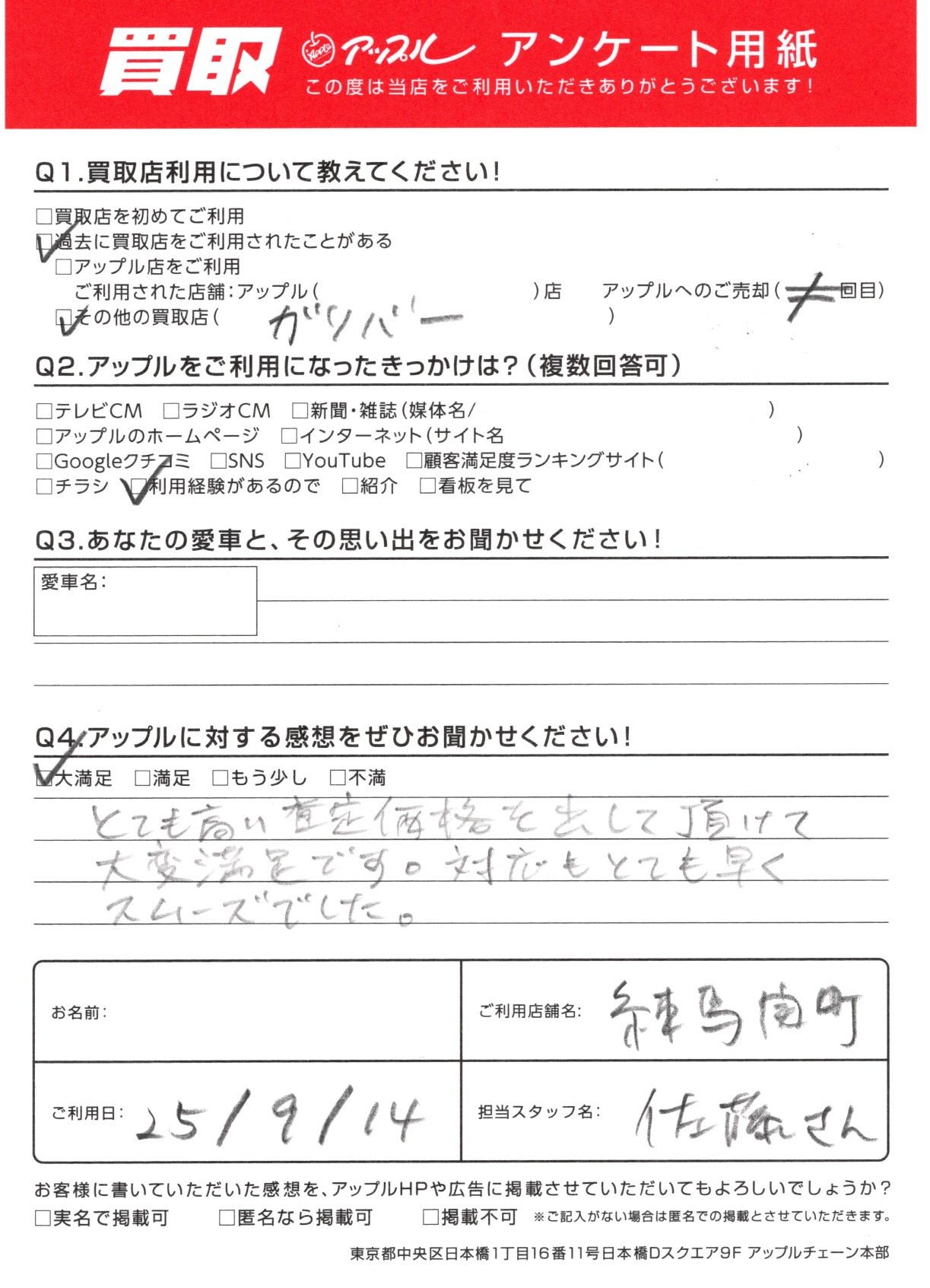 お車のご相談・ 査定だけでもOK! カンタン 入力 30秒 アップルがブランド買取始めました! お電話でも受付中! 受付時間10:00 ~ 19:00 03-5903-8567 お車のご相談・ 査定だけでもOK! カンタン 入力 30秒 アップルがブランド買取始めました! お電話でも受付中! 受付時間10:00 ~ 19:00 03-5903-8567 アップルがブランド買取始めました! お電話でも受付中! 受付時間10:00 ~ 19:00 03-5903-8567 店舗情報 在庫車 スタッフ紹介 ブログ お客様の声 キャンペーン お得 無料査定 click お客様の声 ご記入日: 2025/09/14 Y・T様 車名:トヨタ アルファード(H27年1月~のHYBRID含む) お車:アルファード Q.愛車との思い出は? Q.アップルの感想は?A.大満足:とても高い査定価格を出して頂けて大変満足です。対応もとても早くスムーズでした。 前へ 次へ お客様の声一覧を見る