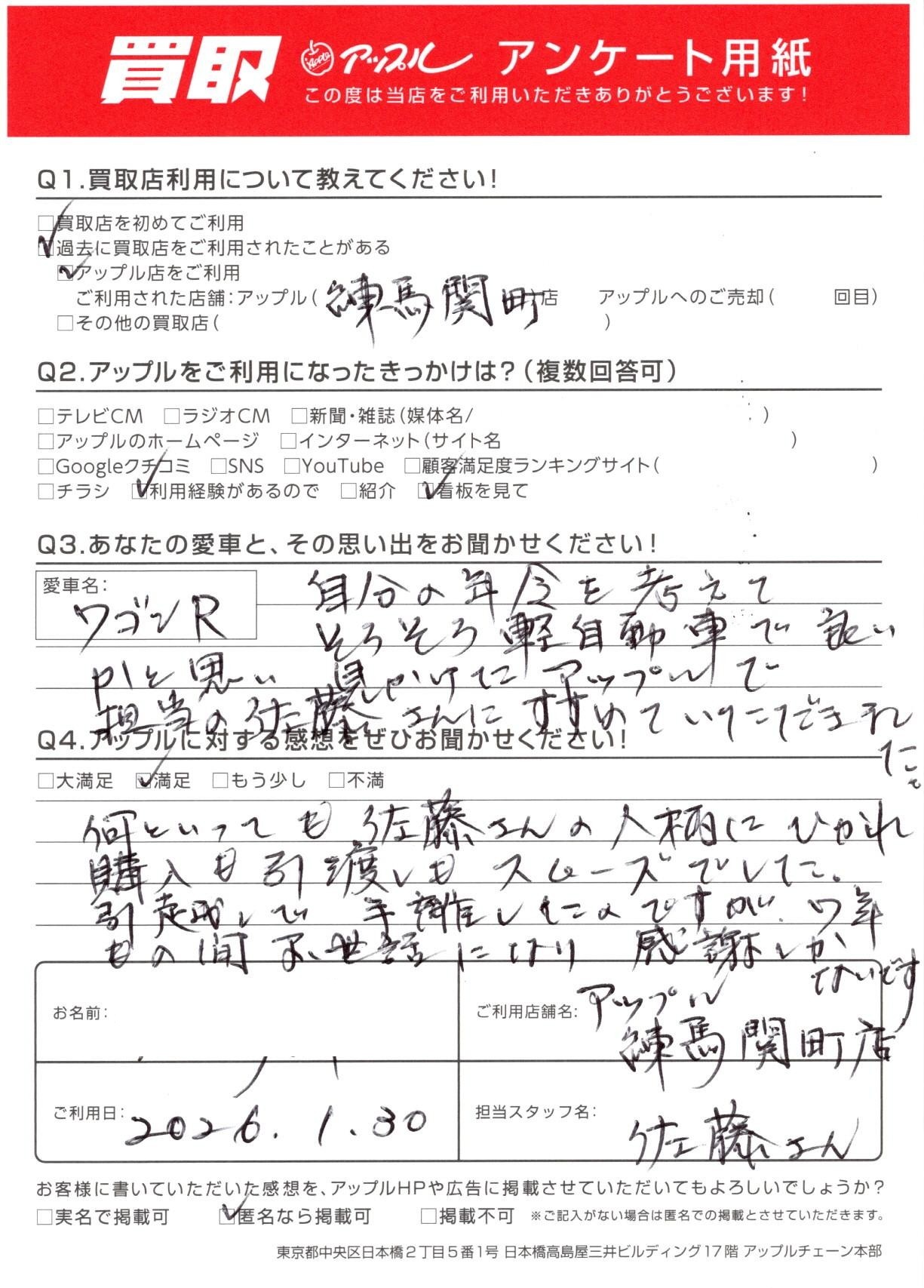 練馬区 I・K様 車名:スズキ ワゴンR