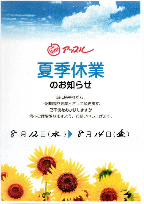 お車のご相談・ 査定だけでもOK! カンタン 入力 30秒 アップルがブランド買取始めました! お電話でも受付中! 受付時間10:00 ~ 19:00(新規ご査定の受付は18:30までとなります。) 0533-66-6666 お車のご相談・ 査定だけでもOK! カンタン 入力 30秒 アップルがブランド買取始めました! お電話でも受付中! 受付時間10:00 ~ 19:00(新規ご査定の受付は18:30までとなります。) 0533-66-6666 アップルがブランド買取始めました! お電話でも受付中! 受付時間10:00 ~ 19:00(新規ご査定の受付は18:30までとなります。) 0533-66-6666 店舗情報 在庫車 スタッフ紹介 ブログ お客様の声 キャンペーン お得 無料査定 click [ 未分類 ] 2020/08/08 (土) 13:26 夏季休業のおしらせ。 店長の竹田です(・∀・)8月12日(水)~14日(金)は夏季休業となります。この間に頂いたオンライン査定へのご依頼や販売車両への見積り依頼などは休み明けに順次対応させて頂きます。ご迷惑をおかけしますが、よろしくお願い致します。今朝お店の洗濯機の側面をミノムシが横断していましたwミノムシなんて見たの、いつ以来だろ・・・。 2020-08-08 13:26:15 新しい記事へ 古い記事へ 最新記事 臨時休業のおしらせ令和2年式WRX-STiタイプS三河湾ラリー2025平成30年式ヴィッツGRスポーツGR有頂天(岡崎市)。 店舗情報に戻る 月別アーカイブ 2025年12月(1)2025年03月(2)2025年02月(4)2025年01月(3)2024年12月(15)2024年11月(12)2024年10月(18)2024年09月(18)2024年08月(14)2024年07月(13)2024年06月(13)2024年05月(13)2024年04月(15)2024年03月(18)2024年02月(15)2024年01月(19)2023年12月(18)2023年11月(17)2023年10月(22)2023年09月(21)2023年08月(12)2023年07月(16)2023年06月(14)2023年05月(13)2023年04月(15)2023年03月(17)2023年02月(24)2023年01月(21)2022年12月(21)2022年11月(18)2022年10月(18)2022年09月(18)2022年08月(19)2022年07月(16)2022年06月(9)2022年05月(7)2022年04月(8)2022年03月(5)2022年02月(9)2022年01月(8)2021年12月(6)2021年11月(8)2021年10月(7)2021年09月(5)2021年08月(3)2021年07月(2)2021年06月(2)2021年05月(4)2021年04月(7)2021年03月(4)2021年02月(4)2021年01月(8)2020年12月(3)2020年11月(6)2020年10月(9)2020年09月(7)2020年08月(10)2020年07月(2)2020年06月(4)2020年05月(5)2020年04月(4)2020年03月(7)2020年02月(7)2020年01月(10)2019年12月(12)2019年11月(12)2019年10月(6)2019年09月(6)2019年08月(10)2019年07月(8)2019年06月(8)2019年05月(10)2019年04月(11)2019年03月(5)2019年02月(9)2019年01月(8)2018年12月(10)2018年11月(6)2018年10月(9)2018年09月(12)2018年08月(8)2018年07月(13)2018年06月(11)2018年05月(1)2018年04月(2)2018年03月(15)2018年02月(14)2018年01月(23)2017年12月(11)2017年11月(2)2017年10月(2)2017年09月(2)2017年08月(4)2017年07月(4)2017年06月(1)2017年05月(1)2017年04月(7)2017年03月(5)2017年02月(5)2017年01月(7)2016年12月(16)2016年11月(25)2016年10月(27)2016年09月(25)2016年08月(26)2016年07月(26)2016年06月(28)2016年05月(28)2016年04月(30)2016年03月(32)2016年02月(29)2016年01月(28)2015年12月(26)2015年11月(30)2015年10月(31)2015年09月(30)2015年08月(31)2015年07月(31)2015年06月(30)2015年05月(31)2015年04月(30)2015年03月(31)2015年02月(28)2015年01月(28)2014年12月(26)2014年11月(30)2014年10月(31)2014年09月(30)2014年08月(31)2014年07月(31)2014年06月(30)2014年05月(13)2014年04月(11)2014年03月(11)2014年02月(8)2014年01月(8)