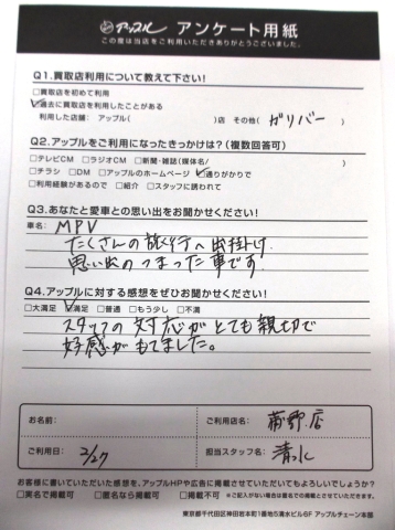 たくさんの旅行へ出掛け思い出のつまった車です。