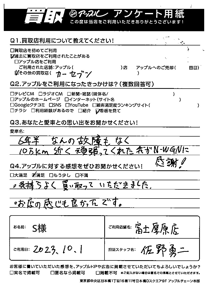 S様 車名:ホンダ N-WGN