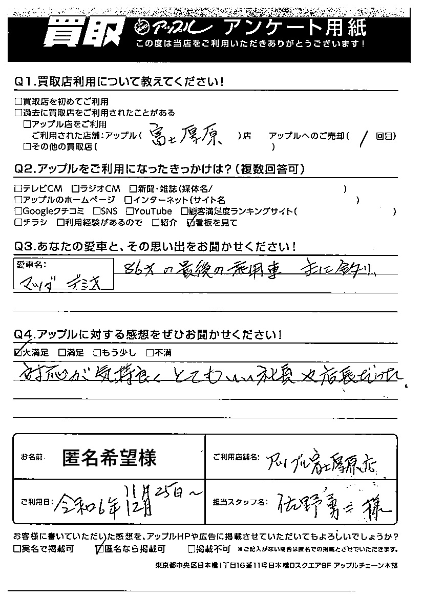 匿名希望様 車名:マツダ デミオ