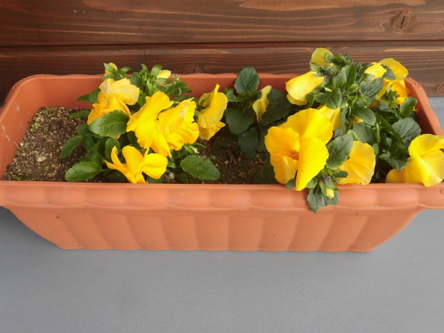 パンジーの花がひと冬越してきれいな花を咲かせています。