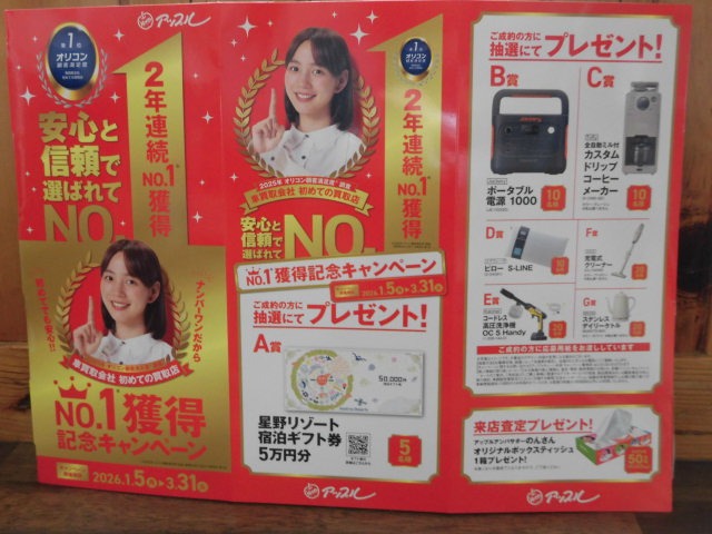 車買取のアップルでは、3月31日までNO.1獲得記念キャンペーンを開催中です。