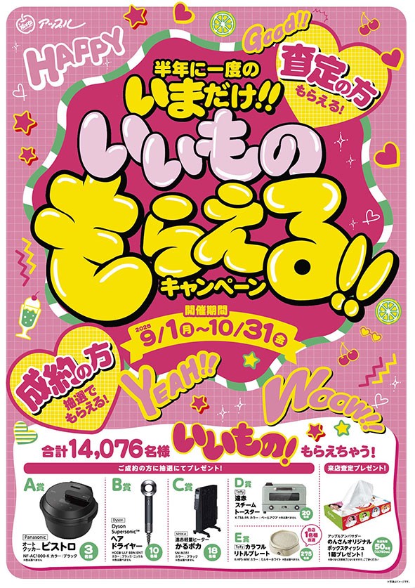 半年に一度のいまだけ!!いいものもらえる!!キャンペーン