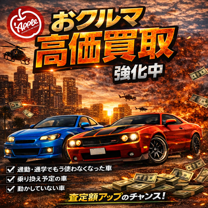 お車のご相談・ 査定だけでもOK! カンタン 入力 30秒 アップルがブランド買取始めました! お電話でも受付中! 受付時間10:00 ~ 18:30 0120-703-903 お車のご相談・ 査定だけでもOK! カンタン 入力 30秒 アップルがブランド買取始めました! お電話でも受付中! 受付時間10:00 ~ 18:30 0120-703-903 アップルがブランド買取始めました! お電話でも受付中! 受付時間10:00 ~ 18:30 0120-703-903 店舗情報 在庫車 スタッフ紹介 ブログ お客様の声 キャンペーン お得 無料査定 click [ つぶやき ] 2026/02/26 (木) 19:08 クルマ売るなら「今」がチャンス! アップル流山あおぞら店✨高価買取 強化中✨・軽自動車・スポーツカー・ミニバン・SUV・軽トラ・古い車もOK・輸入車・バイク その他✔ 他社の査定価格にご納得いかない方✔ 乗り換え予定の方✔ しばらく動かしていないお車無料査定実施中!お気軽にスタッフまで🚙💨 2026-02-26 19:08:00 新しい記事へ 古い記事へ 最新記事 春の気配3月限定!令和8年度自動車税アップル全額負担!!ハイブリッドカー強化買取中3月までに名義変更可能!クルマ売るなら「今」がチャンス! 店舗情報に戻る 月別アーカイブ 2026年03月(4)2026年02月(12)2026年01月(16)2025年12月(13)2025年11月(13)2025年10月(29)2025年09月(15)2025年08月(23)2025年07月(22)2025年06月(11)2025年05月(4)2025年04月(5)2025年03月(4)2025年02月(6)2025年01月(5)2024年12月(6)2024年11月(5)2024年10月(7)2024年09月(1)2024年08月(4)2024年07月(1)2024年06月(1)2024年04月(2)2023年12月(1)2023年11月(1)2023年08月(1)2023年07月(2)2023年06月(2)2023年05月(1)2023年04月(1)2023年03月(1)2023年02月(2)2023年01月(1)2022年12月(1)2022年10月(1)2022年09月(3)2022年08月(2)2022年07月(1)2022年04月(2)2022年03月(3)2022年01月(3)2021年12月(11)2021年11月(2)2021年10月(1)2021年09月(3)2021年08月(5)2021年07月(6)2021年06月(8)2021年05月(5)2021年04月(2)2021年03月(2)2021年02月(2)2021年01月(4)2020年12月(3)2020年11月(4)2020年10月(4)2020年09月(7)2020年08月(6)2020年07月(12)2020年06月(9)2020年05月(7)2020年04月(8)2020年03月(10)2020年02月(8)2020年01月(9)2019年12月(10)2019年11月(8)2019年10月(22)2019年09月(8)2019年06月(3)2019年05月(8)2019年04月(2)2019年03月(1)2019年02月(3)2019年01月(2)2018年12月(5)2018年11月(6)2018年10月(1)2018年09月(6)2018年08月(7)2018年07月(8)2018年06月(3)2018年05月(3)2018年04月(4)2018年03月(6)2018年02月(5)2018年01月(8)2017年12月(7)2017年11月(7)2017年10月(8)2017年09月(8)2017年08月(7)2017年07月(11)2017年06月(9)2017年05月(5)2017年04月(12)2017年03月(9)2017年02月(11)2017年01月(12)2016年12月(16)2016年11月(23)2016年10月(31)2016年09月(30)2016年08月(15)2016年07月(5)2016年06月(17)2016年05月(6)2016年04月(4)2016年03月(3)2016年02月(6)2016年01月(8)2015年12月(6)2015年11月(5)2015年10月(6)2015年09月(6)2015年08月(8)2015年07月(11)2015年06月(8)2015年05月(6)2015年04月(7)2015年03月(7)2015年02月(9)2015年01月(11)2014年12月(14)2014年11月(18)2014年10月(17)2014年09月(17)2014年08月(12)2014年07月(15)2014年06月(6)