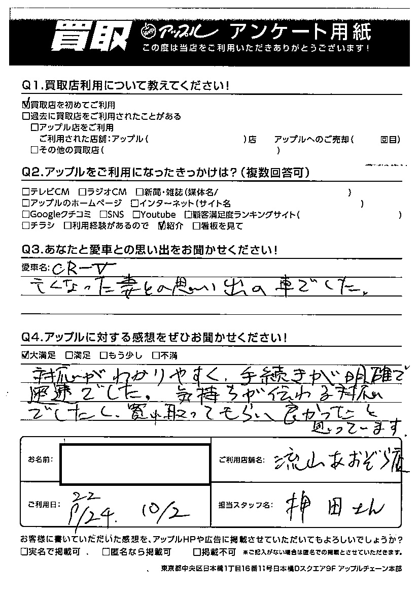 T様 車名:ホンダ CR-V