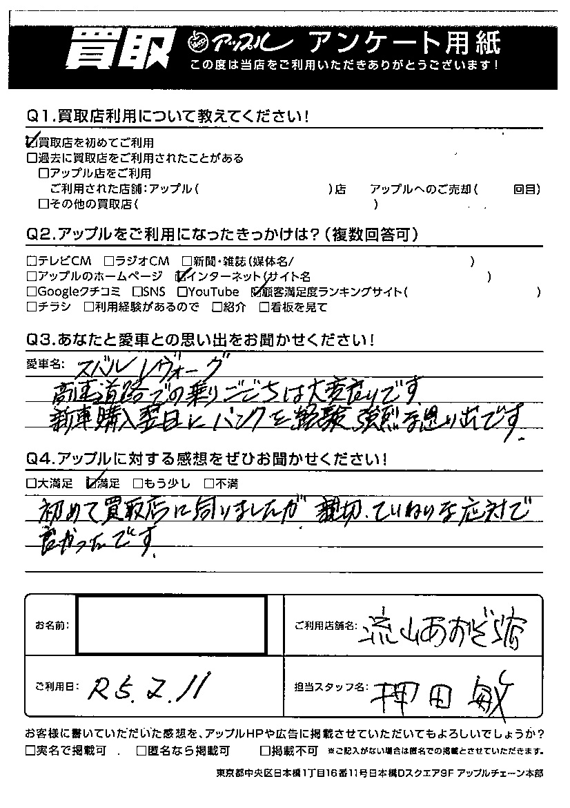 U様 車名:スバル レヴォーグ
